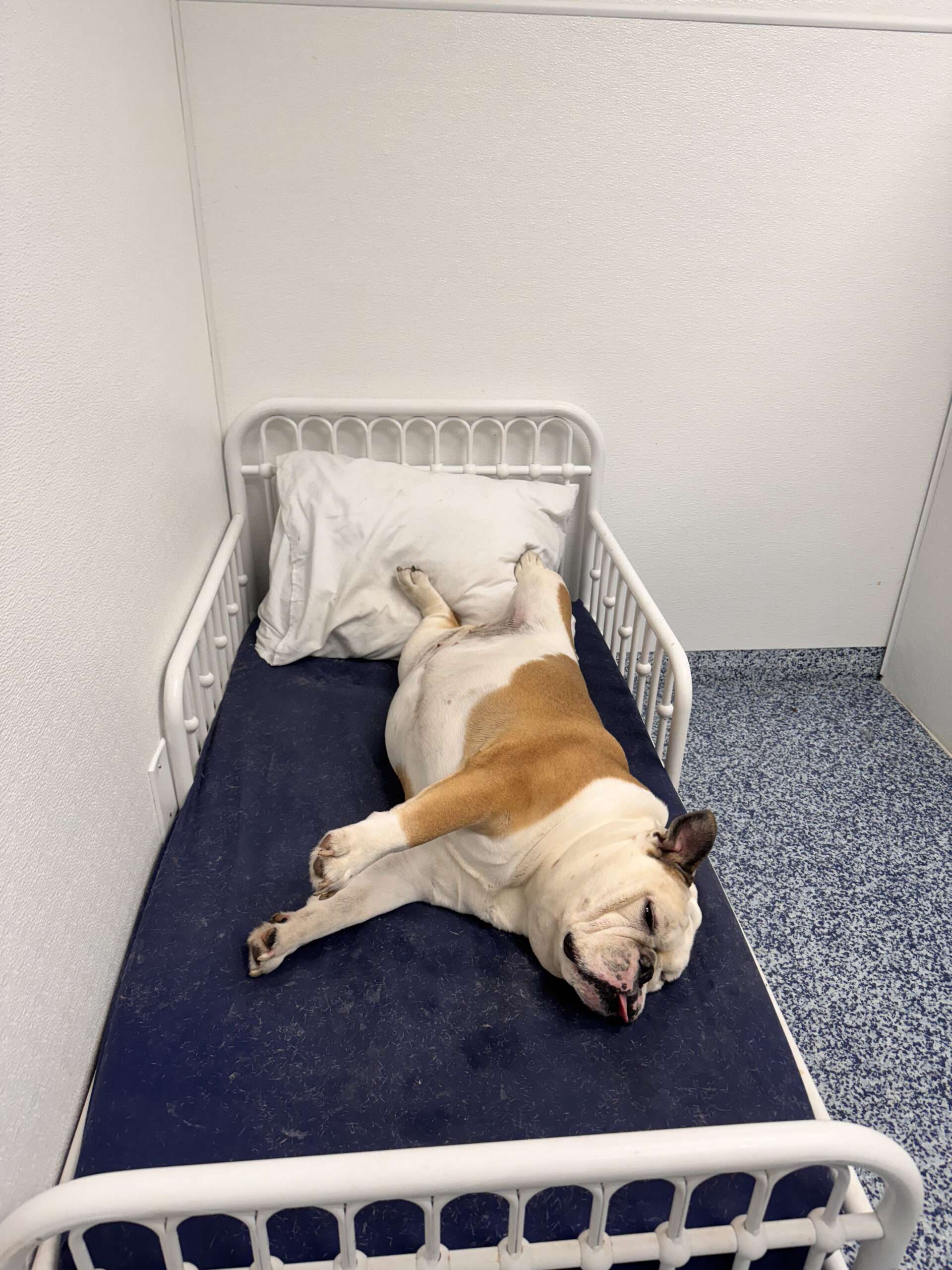 - After a day of fun playing with friends, your dog will never be kenneled for “rest time.” Instead, cozy cots are provided in the playrooms, allowing them to choose when they want to rest. Overnight guests are happy to snuggle into their comfy people beds! Dinner is served to each dog, and a nightlight outside each suite ensures it’s never completely dark.